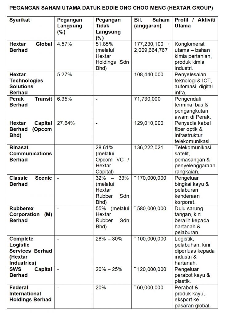 Hextar Capital Berhad dikuasai oleh Datuk Eddie Ong Choo Meng satu dari rangkaian Hextar Group. Selain Binasat Communications Bhd Datuk Eddie Ong Choo Meng juga menguasai syarikat lain seperti berikut;